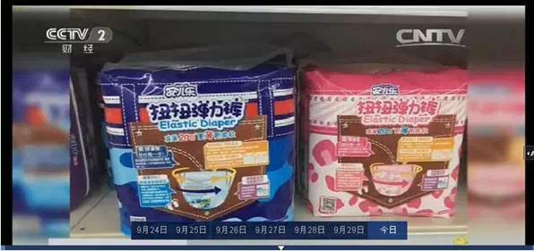 (央视《消费观点》节目中出现的国产尿裤领军品牌安儿乐的产品)