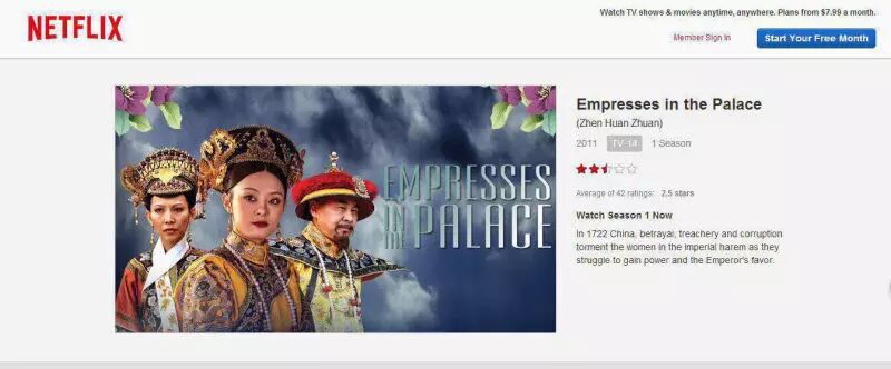 Netflix的收费是12美金包月,也就是说,小白用户只要花费人民币70多块,就能一次性撸完美版《甄嬛传》。