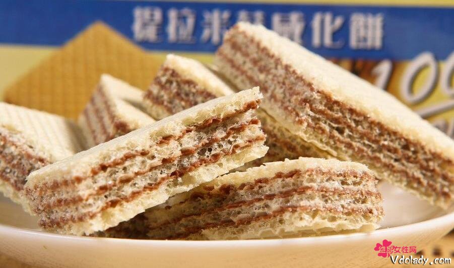与其他饼干不同的是,威化饼干是以小米粉(糯米粉)、淀粉为主要原料,比精白面粉营养稍高。但威化饼中的奶油脂肪含量十分高,平均每一块60卡路里,而且密度低,吃不饱,所以吃多了也不容易察觉。其实,三块巧克力威化饼的热量就已经超过200卡路里了。