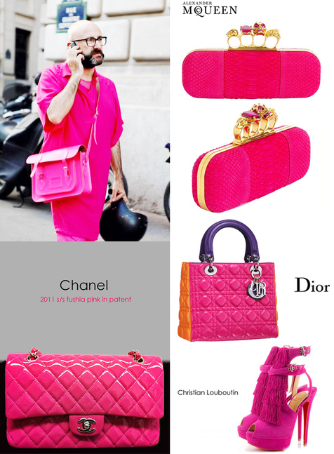 粉红控的最爱:Alexander Mcqueen Pink Clutch 荧光的热潮来势汹汹,Mcqueen将经典随之也换上亮眼新装;Christian Louboutin 的荧光粉红Look;Chanel在2011春夏推出的专署荧光粉红......如此的春天灰常的艳丽啊~!Dior lady绝对是会让女生失去理智的东西——荧光拼接黛妃包