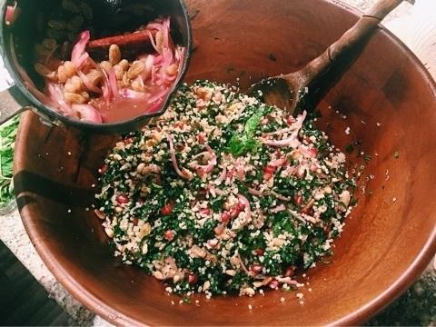 图片就是Rola亲手做的大麦若叶沙拉?加入的是石榴,松籽,黑麦和藜麦。