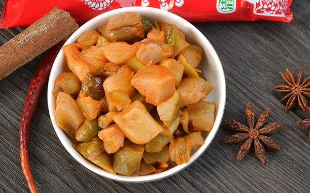 食堂里的菜不好吃?在家懒得做饭?泡面、火锅吃腻了?加点它,保证重燃你对事物的兴趣!这种榨菜用来下饭绝对是嘎嘣脆,很有味!它就是: