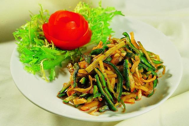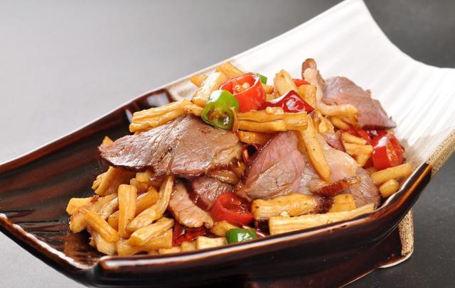 因为是条形的,榨菜丝炒在回锅肉里面好夹起来,而且榨菜吸油,和回锅肉炒在一起吃,也不会觉得油腻,感觉一盘回锅肉都会被吃光!!