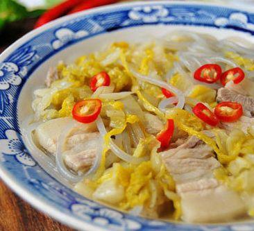 酸菜是东北的特色食物,东北人家里有两样东西不可缺少,一是酸菜缸,二是腌酸菜用的大石头。农村地区甚至还有存放制作酸菜的地窖。东北酸菜通常在冬季制作,用当地大白菜填满酸菜缸,中间加入食盐,浇上热水隔绝空气,自然发酵一个月后而成。口感脆嫩.色泽鲜亮,含有丰富的乳酸,能增进食欲,促进消化。想想都流水了,翠花,快上酸菜吧!