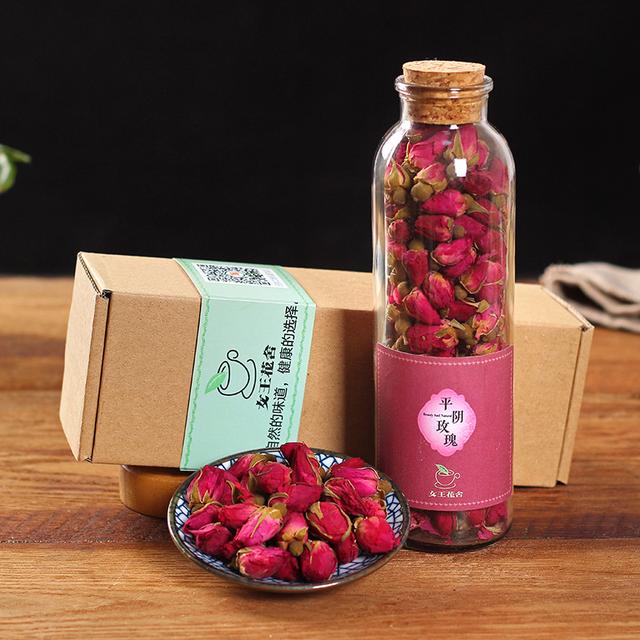 中医学认为,玫瑰花性温,有行气、解郁、活血、化淤、调经止痛的作用,且玫瑰花含有多种维生素及单宁酸,有助于改善血液循环,调节内分泌,抗衰老。所以经期有血块及血瘀者,可以饮用玫瑰花茶,有助于排除淤血。具体做法是:挑取6~8朵干玫瑰,用80℃的水冲泡饮用。每日2杯,经期及经后都可饮用。下面这两款产品便是对经期女生极好的玫瑰花茶,具有驱寒暖宫的效果。