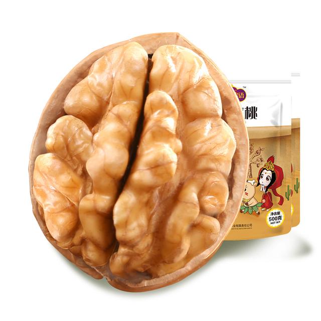 核桃仁含有的大量维生素E,经常食用有润肌肤、乌须发的作用,可以令皮肤滋润光滑,富于弹性, 当感到疲劳时,嚼些核桃仁,有缓解疲劳和压力的作用。这款核桃是新疆特产,皮非常薄,肉质口感细腻。小编的同事们刚刚买过,很好吃。