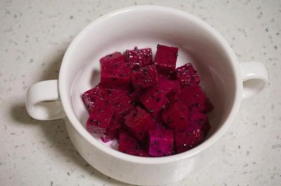 1、火龙果一个,去皮切丁,少量火龙果丁留下做装饰,剩余的用料理机打成泥状。