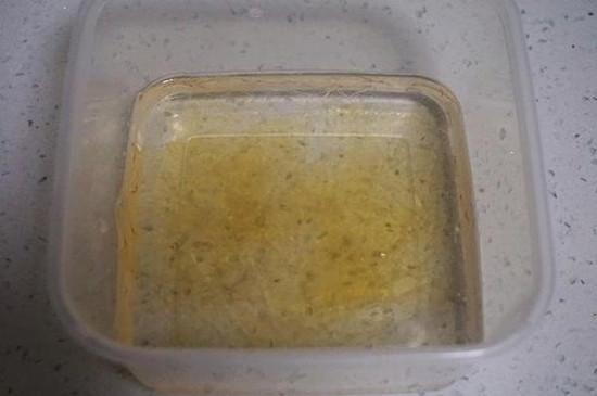 2、吉利丁片放入冷水里浸泡10分钟左右,泡软。