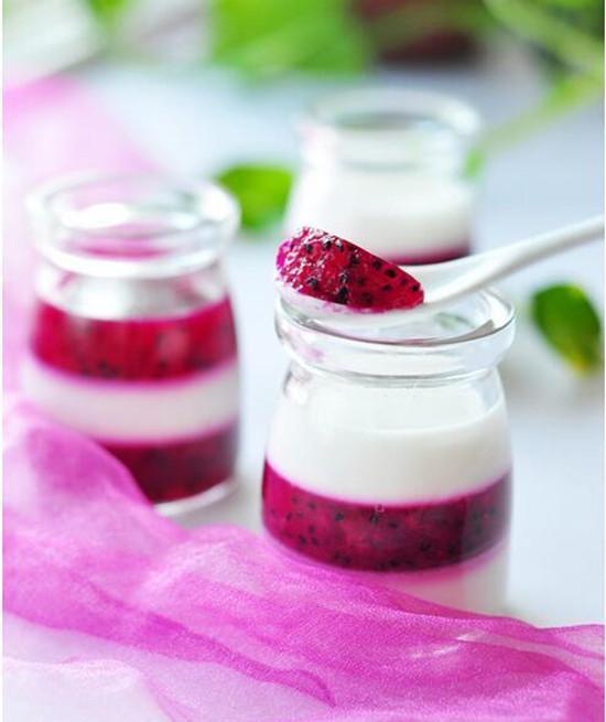 三种颜色混杂的火龙果布丁,加入了醇香牛奶,这样布丁吃起来口感更顺滑,是特别讨喜的一种甜品,招待朋友最为适合。