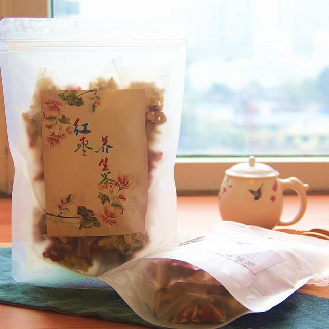 八宝茶以茶叶为底,掺有白糖(或冰糖)、玫瑰花、枸杞、红枣、核桃仁、桂圆肉、芝麻、葡萄干、苹果片等,喝起来香甜可口,滋味独具,并有滋阴润肺、清嗓利喉之功效。