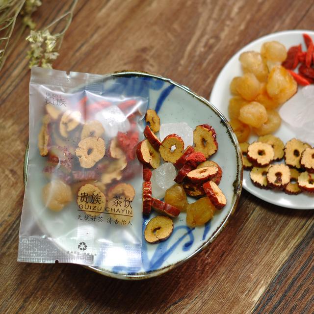 里面配的有桂圆、玫瑰花、菊花、冰糖、红枣还有枸杞,一小包一小包包装好的,是我想要的这几种效果,有着美容养生的功效