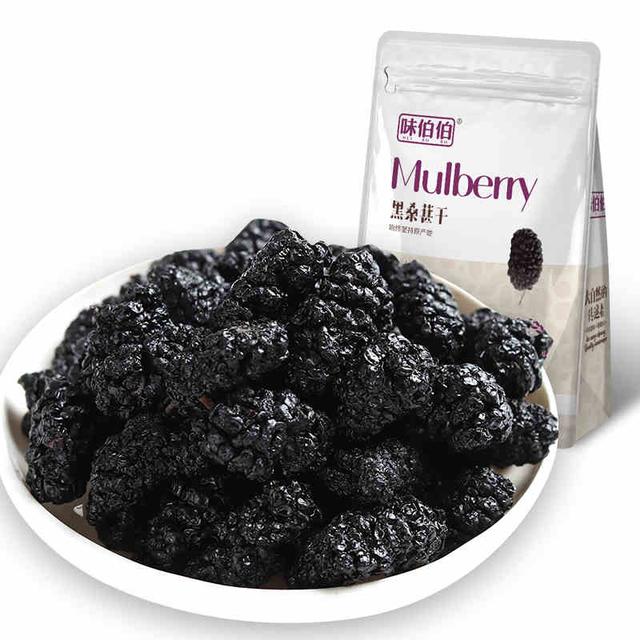 说到桑葚干,一下就勾起了小编儿时的回忆,桑葚子的味道甜美,是一种野生果实,桑葚子非常好吃。在农村长大的孩子都知道,每当桑葚子成熟的季节,几乎每天都要爬到桑树上去摘桑葚子来吃。在中医认为桑葚子性微寒,味甘酸、入心、肝、肾经、为养心益智,滋补强壮的佳果。桑葚子具有生津止渴,补血滋阴,润肠燥等功效,主治因阴血不足所引起的耳鸣心悸,头晕目眩、腰膝酸软,烦躁失眠,须发早白、大便干结,消渴口干等症。桑椹子含有丰富的蛋白质,多种人体必需的氨基酸、钙、铁、锌等多种矿物元素。桑葚干能够提高人体免疫力,能够有效地抑制癌细胞。