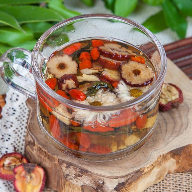 八宝茶里面有含有贡菊人参枸杞等,不仅能滋补养颜,而且还能明目安神。对预防和降三高也有一定的作用。