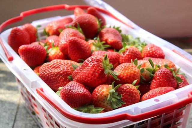 正常草莓表面的芝麻粒(种子)是金黄色的,如果连芝麻粒都是红艳艳的,就要警惕了。