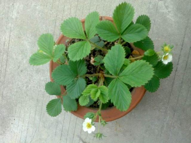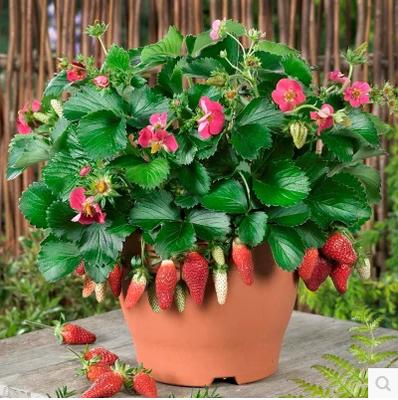 大家平时都会养花 其实草莓花也是很有观赏性的呢,种在花盆里,花开赏花。结果了大概舍不得吃的吧。哈哈,不过光是想想就会觉得很甜的呢!