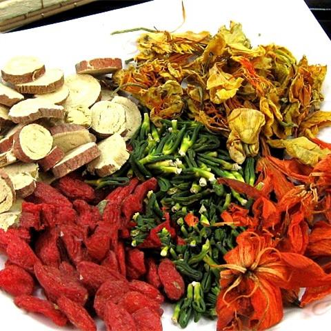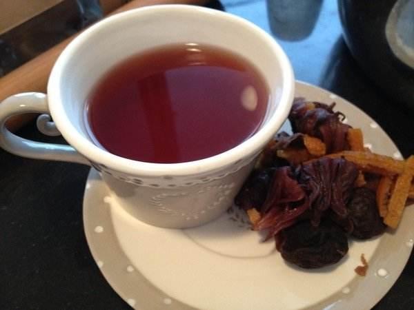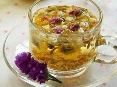 第一款是解暑茶,在茶壶里放入菊花、金银花、桂花,为了增加口感,放上一些苹果丁,冲入烧开的热水。泡开之后,趁热饮上一杯,满嘴的茶香果香,微微出汗,却更加凉快了。
