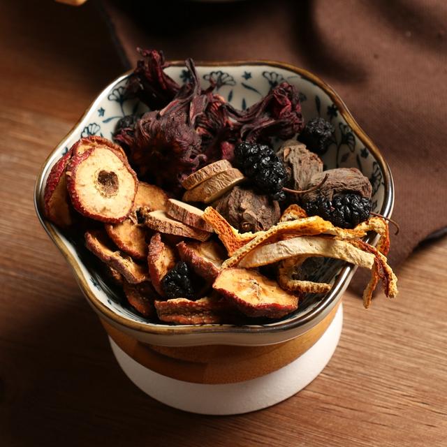 第三款自制的酸梅汤,准备山楂、陈皮、乌梅、甘草、菊花、冰糖,加水熬制。大火烧开以后,转小火,大概1个小时左右,如果有桂花,关火以后撒上一些,就更好了。
