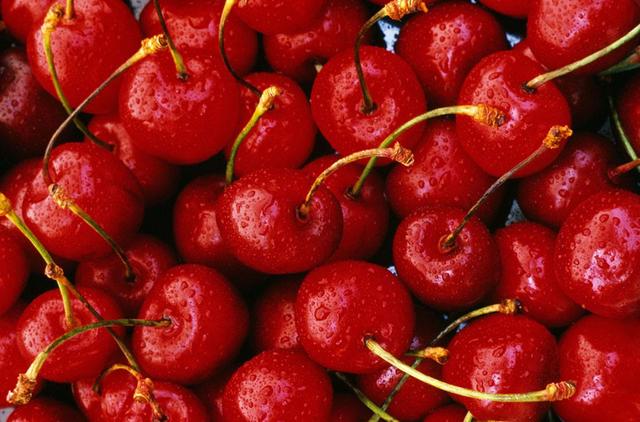樱桃素有“春果第一枝”的美誉,目前在我国各地都有栽培。樱桃果实肉厚,味美多汁,色泽鲜艳,营养丰富,其铁的含量尤为突出,超过柑橘、梨和苹果20倍以上,居水果首位。樱桃性温,味甘微酸,具有补中益气,调中益颜,健脾开胃的功效。春食樱桃可发汗、益气、祛风及透疹。需注意的是,樱桃属火,不可多食,身体阴虚火旺、鼻出血等症及患热病者应忌食或少食。