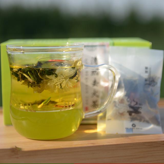 春季人群较易感染呼吸疾病,金银花茶可缓解春季常见的上呼吸道感染、扁桃体炎、流行性感冒等病症,有助凉血止痢、利尿养肝。需要注意的是,金银花茶适合在出现轻微外感症状时饮用,起到一定的效果。这款茶,汤色明亮,清新爽口,香气淡雅,口感醇正,清润回甘。是办公居家必备的好茶。泡法:宜用透明玻璃茶杯,冲泡时置杯于茶盘内,取金银花茶二三克入杯。用初沸开水稍凉至90℃左右冲泡,随即加上杯盖,冲泡3分钟后即可饮用。