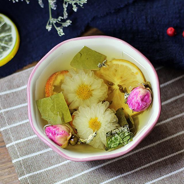 推荐理由:自然,健康,调理,养生。柠檬美白养颜,山楂消食开胃,菊花清火祛湿,决明子养肝明目,荷叶润肠通便。为美容养颜量身打造的完美搭配,另加入甜菊叶代替普通花茶的白糖调味,提升口感的同时降低脂肪,用心做一碗美丽的好茶。