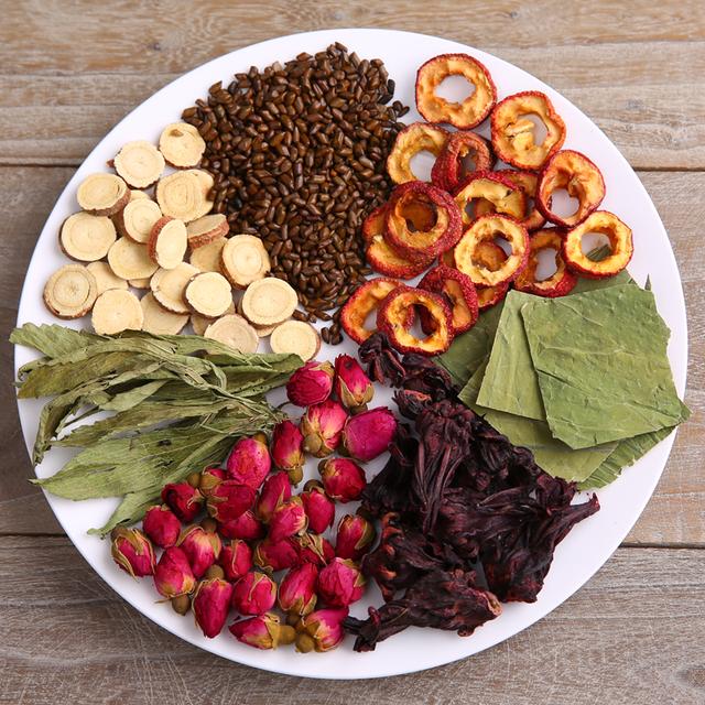 然后是这款养生八宝茶,它由人参、山楂、枸杞、杜仲等上好药材细心加工而成,它能够很好地改善我们的身体亚健康状况,是一款调理身体很好的产品,大家可以在家里多备上一些,味道也很好哦。