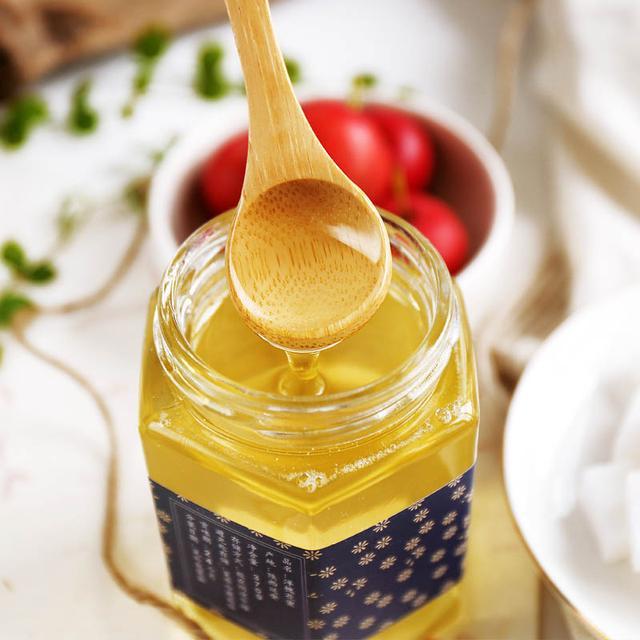 第三款洋槐蜂蜜槐花蜜,槐花蜜其性清凉,具有槐花之去湿利尿、凉血止血之功效,能保持毛细血管正常的抵抗能力,有舒张血管、改善血液循环、防止血管硬化、降低血脂血压等作用,并用于预防中风,同时亦有清热补中、解毒润燥之功效。