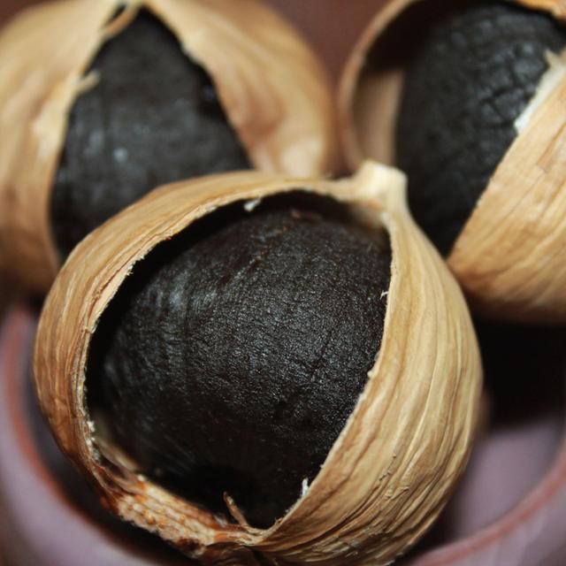 最后一款独头黑蒜,大蒜中的蒜味的主要成分是蒜素,蒜素和维他命B1相结合形成的叫做蒜硫胺素的成分具有解除疲劳、促进糖质分解的功效,控制血糖上升;同时大蒜中叫做增精素的有机硫化物可以活化细胞,能帮助维他命B1将糖份转化为能源,具有解除疲劳,增强体力等疗效。