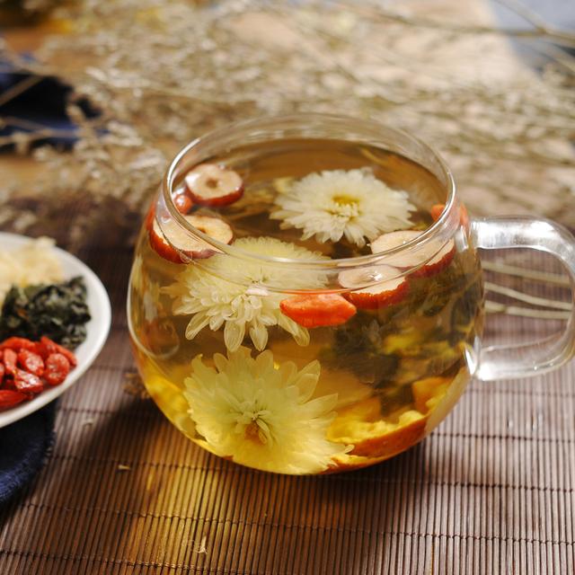 植物的花朵在营养学的角度来说,是精华的产物,能使眼睛疲劳的症状消退,如果每天喝三到四杯的菊花茶,对恢复视力也有帮助。菊花茶还可以帮助清理肠胃,放在手指上容易捻化,细腻。
