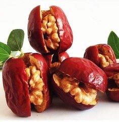 红枣夹核桃核桃油脂含量较高,食用核桃,摄入油脂,有利于滋补人体五脏,强肾益脾,还可滋润皮肤,有助于皮肤抗氧化抗衰老。但过量食用红枣有损消化功能,而且红枣的含糖量高,糖尿病人、牙病患者不宜多食。