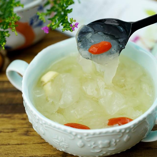 桃胶是蔷薇科植物桃或山桃等树皮中分泌出来的树脂,又被称作美人泪,泡发之后晶莹剔透,它有清血降脂,缓解压力和抗皱嫩肤的功效,对女性十分有好处。