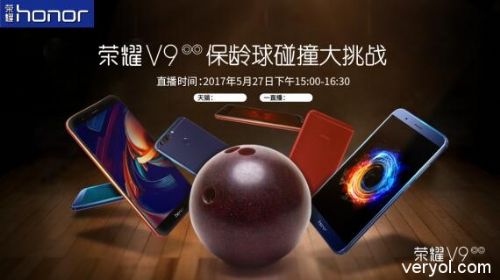 荣耀V9配置了麒麟960处理器+EMUI5.1性能解决方案,采用5.7寸2K屏幕,以年度旗舰机皇的超强品质备受好评。此前曾经受住了电钻、火烧、超低温等严酷测试,首次正面挑战时速35迈的保龄球撞击。