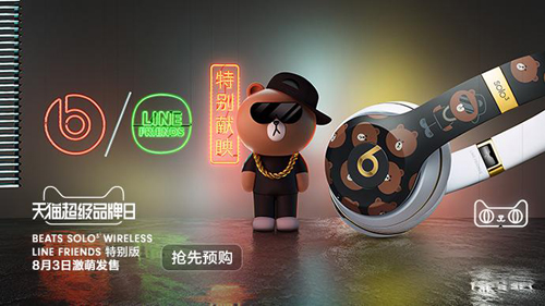 作为潮人标配的数码品牌,BEATS似乎始终都离不开时尚的标签。继与时装品牌Balmain联名系列合作后,8月3日,BEATS天猫超级品牌日又发布了一款LINE FRIENDS 特别版耳机,萌翻了全球。不同于以往的酷炫调性,该款新品凭借潮牌与卡通形象的激萌跨界,在天猫超级品牌日一上线即备受关注,可谓是风靡全球。