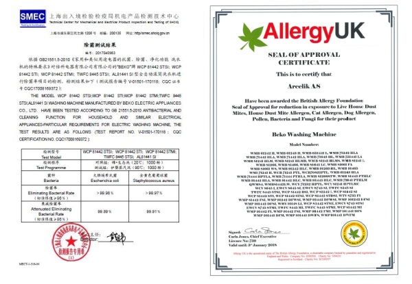 针对婴儿衣物的洗涤难题,Beko倍科“蒸爱”系列洗衣机独特的护婴蒸汽洗程序,秉承欧洲先进洗衣理念,利用高温蒸汽深层渗透并打开衣物纤维,软化污渍,配合高温热水轻松处理婴儿衣物,即便是不同衣物混合洗涤,也能有效去除尘螨、细菌等多种过敏原,经过英国过敏协会抗过敏认证和中国质量检测中心抗菌认证,衣物更加洁净柔顺,贴心呵护婴儿健康。