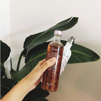 Fresh玫瑰水也是爆款啦,主要成分是萃取大马士革玫瑰精萃什么的,另外还添加了保湿剂和透明质酸之类的,配合高浓度花水和精油,有平衡保湿的作用。Fresh玫瑰水这个质地要更稀薄一些,上脸有的时候会有刺痛感,感觉对于皮肤来说不那么稳定。