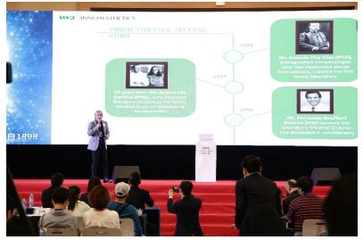 大会上,Fernando教授分享了英诺皮肤世家的品牌故事,将英诺“创新源于积累、从医学到美学、前沿科技、精准有效的品牌精神”娓娓道来,令现场嘉宾零距离感受欧洲顶尖医美品牌的魅力。