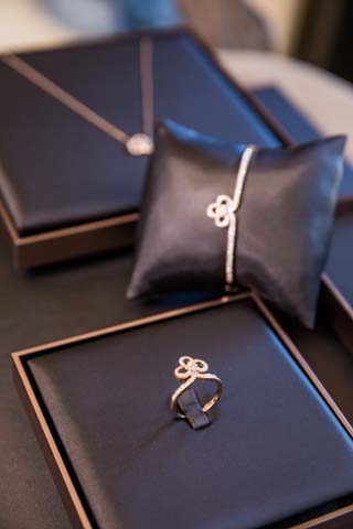 店内展柜陈列有金伯利钻石高级珠宝延伸商业款和精美新款钻饰,宾客可莅临门店试戴挑选,更可定制专属自己独一无二的克拉艺术珍品,将时尚和优雅佩戴于身。