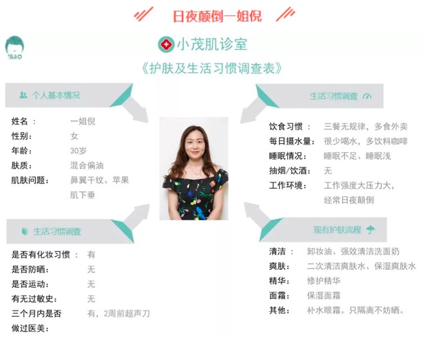 一姐倪,30岁,是上海著名三甲医院产科护士长,工作强度可想而知。经常熬夜值班,三餐不规律且几乎全外卖,忙起来一天不喝水,压力大到爆表。平时基本不护肤(没时间)全靠淡妆硬撑。所以记住我的话:女人不能偷懒,护肤一定要做!