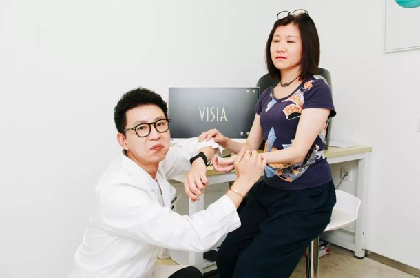 ▵干纹下垂,肌肤缺乏弹力。一姐倪风风火火走进来的时候真的自带BGM,乍一看她皮肤挺好,因为天生肤色白,但凑近了看会发现肌肤小问题不少,特别是鼻翼非常干,有明显干纹以及苹果肌以及嘴角都有下垂感。