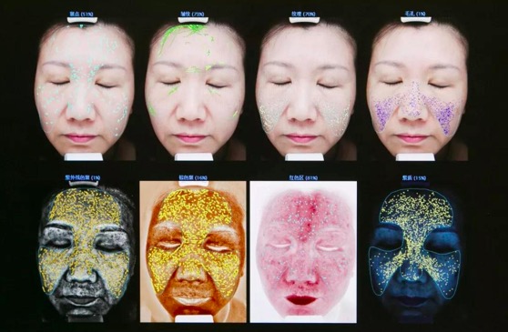 红色区:可检测肌肤是否有粉刺、炎症等,及是否容易出现泛红问题;