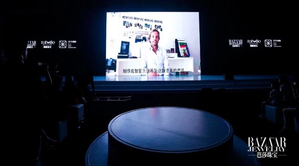 在活动现场上,国际顶尖现代艺术舞团“北京9当代舞团”,特别创作了一场“挚爱·连接”创意舞蹈秀,从天而降的“光”“影”“雪花”将现场变成一次奇妙的视觉艺术之旅。在音乐、灯光、舞蹈、影像、珠宝交织中,《芭莎珠宝》主编敬静、TOTWOO创始人王洁明和Marco,共同开启了“TOTWOO智爱天使吊坠”在中国的惊艳亮相,也代表着“未来首饰”时代的到来。