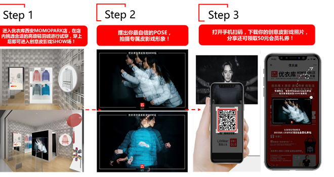 优衣库城市店铺将城市独特气质与文化积淀,用创新技术与店铺体验,为消费者带来进化的城市生活。皮影戏作为陕西民间传统艺术,也是中国珍贵的非物质文化遗产之一,以精致工巧的艺术特色为人们所喜爱。此次在西安MOMOPARK店内特别设置创意皮影戏SHOW场,消费者可穿着优衣库高级轻型羽绒服进行自己专属皮影戏拍摄,体验服装、科技与传统艺术碰撞出的全新感受,让服装活起来!同时也有全新秋冬主打商品,以不断进化的服装产品革新穿衣体验,满足你日常多场合多功能穿衣需求,进化你的生活,让生活活起来。