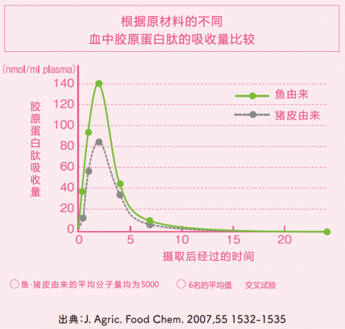 因为原材料的不同,会影响人体对胶原蛋白的吸收,所以胶原蛋白产品的吸收效果是对于胶原蛋白产品效果的评判标准。经比对,我们知道取自于鱼的胶原蛋白更易被人体所吸收,其吸收量是取自猪皮的胶原蛋白的1.5倍。