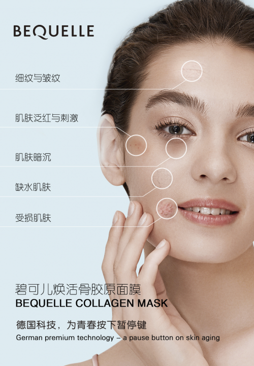 BEQUELLE德国百年科技,始终尊重肌肤的内在智慧,倾尽心力,研究呈现真实之美的独特之道。针对不同肌肤问题,强韧肌底、加乘肌底吸收力、激发肌肤自我修护和防御技能,提升肌肤状态,重现原生肌。BEQUELLE焕活骨胶原面膜,融合三种精纯养分,骨胶原+透明质酸+ 特殊抗老成分Lifting Complex,让肌肤形成持续良好的自我修护,养护鲜活瓷肌。