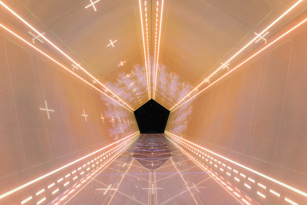 迷宫:在新概念屏障迷宫里,墙壁间蜿蜒的照明路径映射出旅客的移动路线